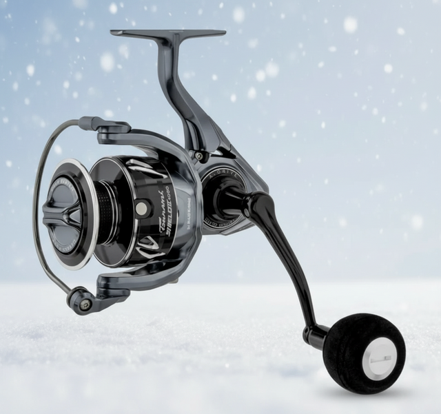 The Tsunami Shield II Spinning Reel delivers unmatched power and precision in any salt or freshwater environment. Its all-metal body and 12-seal watertight design stand up to the harshest conditions, while graphite or aluminum rotors and digitally optimized A or B Drive gear train provides smooth, efficient power across all sizes.